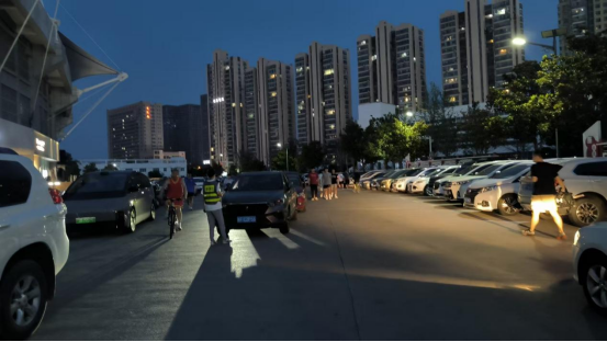 城泊公司針對(duì)體育中心周邊車(chē)流、人流集中的特點(diǎn),提前制定保障方案,增派經(jīng)驗(yàn)豐富的員工負(fù)責(zé)現(xiàn)場(chǎng)值守?;顒?dòng)從傍晚7點(diǎn)開(kāi)始,身著制服的城泊員工在停車(chē)場(chǎng)入口、內(nèi)部道路交叉口、車(chē)位密集區(qū)等關(guān)鍵點(diǎn)位開(kāi)展引導(dǎo)工作,成為夜市里一道忙碌而溫暖的風(fēng)景線。